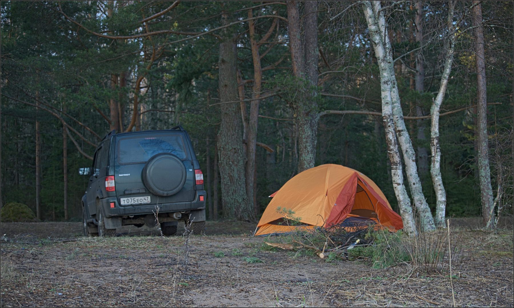 За пару дней до поездки по Ленинградской области прошел сильный ураган, поваливший деревья в лесах и перекрывший завалами деревьев некоторые дороги. Пришлось и нам с этим столкнуться на границе Ленинградской области и Карелии.