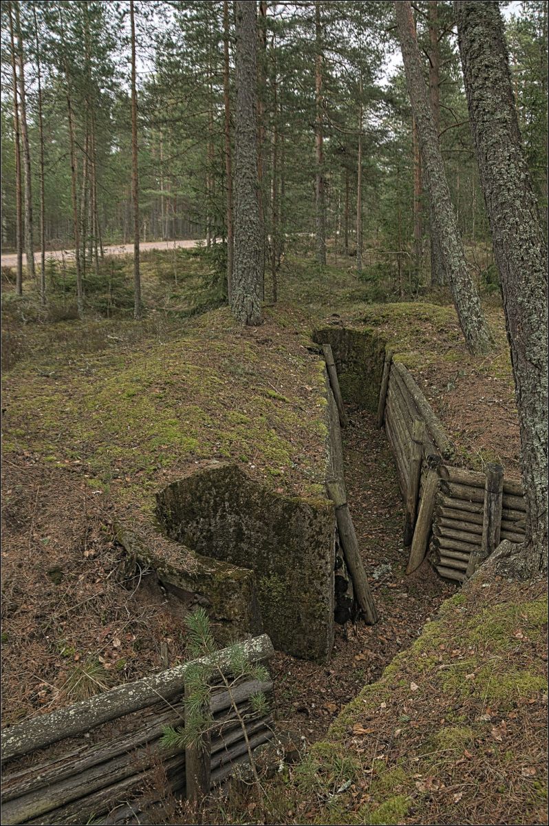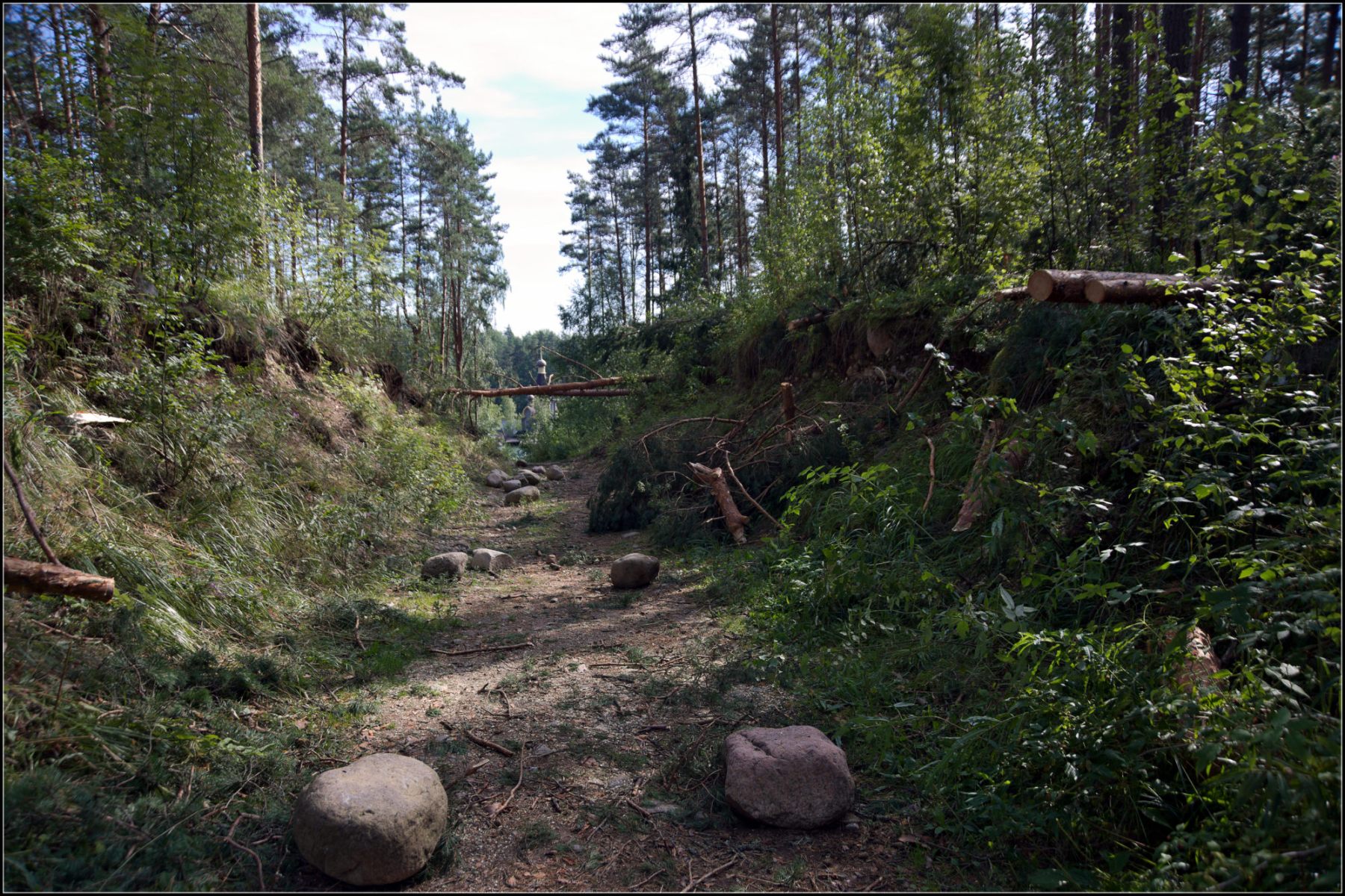 Дальше намеревались проехать через Михалёво и Дымово до Хийтола и оттуда уже ехать в Рускеала. Однако вскоре после посёлка Ринтала дорога упёрлась в завал, который только начали расчищать и стало ясно, что ждать возможности проезда тут можно до морковкина заговенья. Однако я знал про еще одну дорогу в Хийтола, которая ведет в Хийтола фактически через погранзаставу и решил проехать по ней, несмотря на риск возможных проблем с пограничниками. Однако и на этой дороге мы вскоре уперлись в глухой завал.