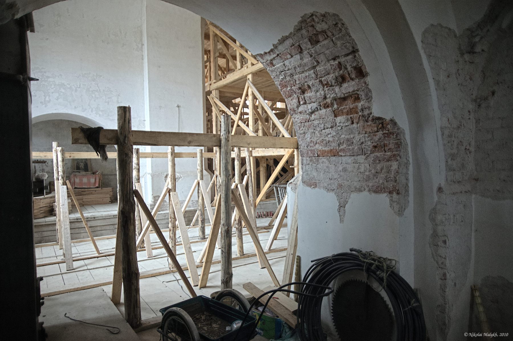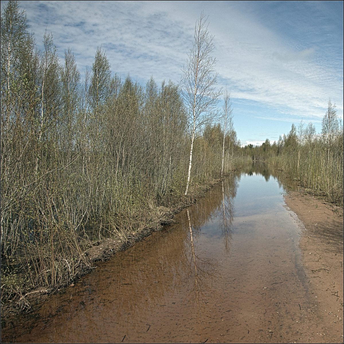 В результате дорога представляла собой узкую проезжую полосу между стенами свежих спилов поваленных деревьев, высота которых порой превышал два метра. Ширина расчищенной полосы едва позволяла проехать, но на наше счастье встречных машин не было и мы благополучно проехали через Севастьяново до Кузнечного.